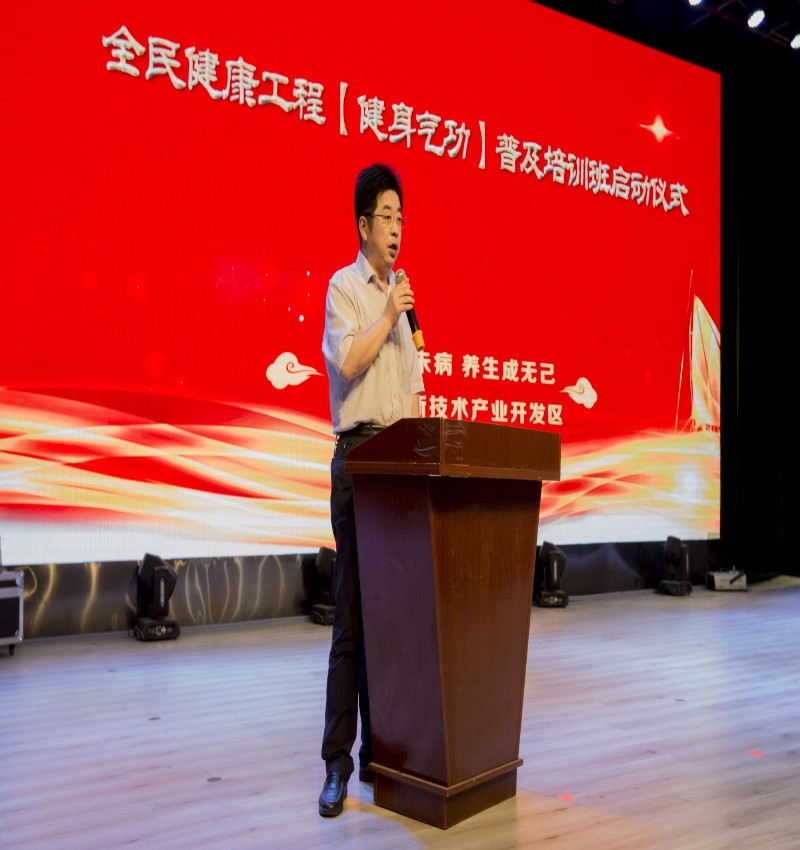 6月21日上午,聊城高新技術產業(yè)開發(fā)區(qū)全民健康工程[健身氣功]普及培訓班活動,在聊城市九州生物產業(yè)園隆重舉行。