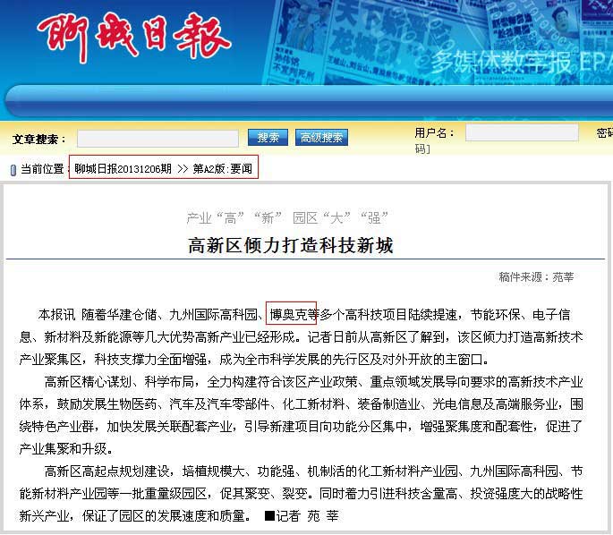 高新區(qū)傾力打造科技新城,聊城日?qǐng)?bào),聊城新聞網(wǎng)等眾多媒體聚焦山東博奧克生物科技有限公司,以下是聊城日?qǐng)?bào)道全文: